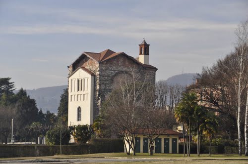La leggenda – Poco tempo dopo, Andrea da Strumi giunse ad Angera alla ricerca dell’amico Arialdo e nei pressi della chiesa di San Pietro (località Bettola) trovò due donne in lacrime. Dopo averle rincuorate, si fece raccontare la ragione del loro turbamento e, con malcelato timore, esse dissero: “.. in questi giorni è stato consumato un così grave delitto, che stiamo aspettando con ansia che Dio onnipotente ci sprofondi tutti quanti all’inferno, in seguito a tale efferatezza; e tu ci chiedi perché stiamo piangendo?…” Con un gesto della mano indicarono l’isolino come luogo dell’orrendo delitto. Poi le due donne, levando gli occhi verso il cielo che si stava rannuvolando, gridarono: ricordo dell’orrendo misfatto tutti i Santi del Paradiso nel giorno del sacrificio di questo martire verseranno su queste terre le loro lacrime”. I mesi passavano e nessuno più voleva ricordare quell’evento tragico.