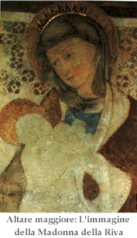 Il miracolo della Madonna della Riva – Cent’anni dopo, per punire l’efferato delitto, nel settembre del 1177, la natura scatenò un piccolo diluvio. Il lago si alzò di 18 braccia (circa 11 m), sommerse i paesi costieri e, per impedire che l’uomo si stabilisse sulla terra bagnata dal sangue di un innocente, spazzò via la maggior parte dell’Isolino, lasciandone solamente una piccola parte. Gli anni passarono e più nessuno ripensò alla profezia delle lacrime dei Santi. A risvegliare i ricordi ormai sopiti o dimenticati ci pensò una piccola effigie sacra dipinta su di un muro di casa Berna, situata a poche centinaia di metri dal luogo del martirio di Arialdo. La mattina del 27 giugno 1657, una donna di nome Maddalena, mentre si recava in riva al lago per il bucato, passando davanti all’immagine sacra, addobbata in quei giorni con fiori e ceri, si fermò per una preghiera. Mentre recitava il rosario, notò che dagli occhi della Madonna sgorgavano lacrime di sangue. Stupita e incredula allo stesso tempo, gridò con forza al miracolo. Le altre donne abbandonarono subito la loro brela, accorsero verso Maddalena e anch’esse videro quelle lacrime di sangue. Come uno sciame di api corsero in ogni angolo del borgo a divulgare il fatto, e la notizia arrivò anche in Parrocchia. I canonici del Capitolo interruppero immediatamente le loro orazioni; in processione, con in testa la croce astile, si recarono sui posto e il prevosto don Giorgio Castiglioni asciugò le lacrime dal viso della Madonna con un bianco telo di lino. Tutta Angera si trovò riunita su quel prato davanti alla Vergine. Non si parlava che del miracolo, e lentamente a qualche anziano tornarono alla mente vecchi ricordi tramandati di padre in figlio, dapprima confusi e poi, lentamente, più chiari. Alcuni pescatori, la sera stessa, si recarono all’Isolino per deporre un fiore ed un cero sul luogo del martirio di Arialdo. La profezia delle donne incontrate da Andrea secoli prima non tardò ad avverarsi. Il cielo si coprì di nuvole e tra lampi e tuoni si scatenò un furioso temporale; temporale che puntualmente si verifica ancora oggi tutti i 27 giugno o nei giorni immediatamente vicini.