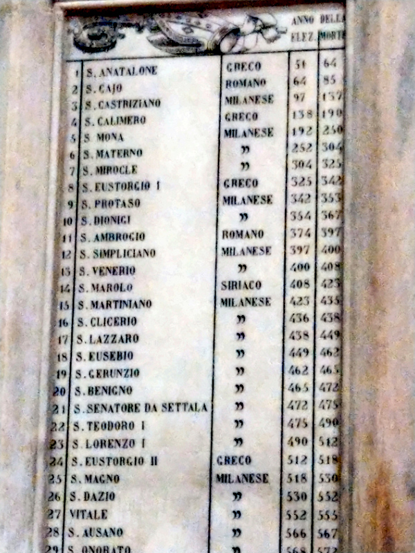 L’arcidiocesi milanese è universalmente nota come “Chiesa ambrosiana”, dal nome del suo più grande vescovo e dottore della Chiesa sant’Ambrogio, che la resse nella seconda metà del IV secolo. Ciò che assai probabilmente non tutti sapranno è che invece tale diocesi venera come proto-vescovo un certo Sant’Anatalone, facente parte con Ambrogio e Carlo Borromeo di una schiera di ben 143 vescovi, tra i quali 38 santi e 2 beati, che nel corso di diciassette secoli hanno retto la sede episcopale dell’antica Mediolanum.