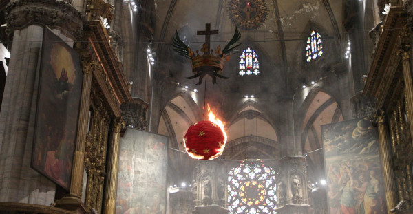 All’epoca durante le celebrazioni più importanti veniva acceso un ‘pharus’, un lampadario con lumi disposti a corona, sopra ai quali era posto un anello di bambagia che, bruciando, trasmetteva il fuoco alle singole lampade. Questo simboleggiava il trionfo e la gloria dei martiri, e nel caso del Duomo di Milano il rito allude al sacrificio della vita da parte della martire Tecla.